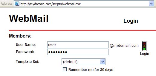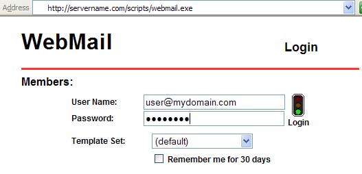 An alternative to 1) and 2) above is to display an edit box allowing a fully specified login. To setup webmail this way remove the thext "@mail2.4securemail.com" from the login.tpl file for the template set that you are using.